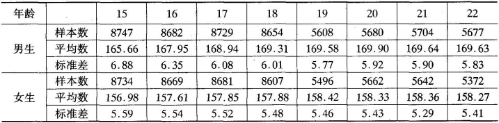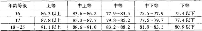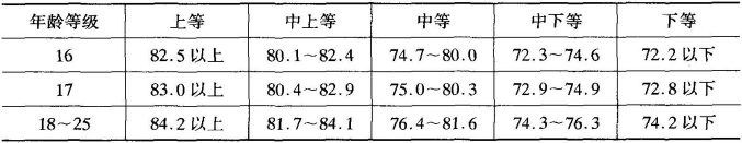 标准对照法是将测量所获得的数值与相应的标准进行对比,从而对该指标的测量结果进行评价的一种方法。我国近几年进行的全国大、中、小学生健康检查中,对我国汉族大学生的身高、坐高、体重和胸围等形态发育指标的均值都作了系统统计,绝大多数省市还公布了本省市大学生上述指标的均值资料。依据这些统计资料,以及通过离差法或百分位制定的水平评价表,即可对测量的形态发育结果进行评价。