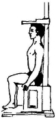 测量坐高的方法是:受试者坐在身高坐高计的坐板上,使骶骨部、两肩胛间紧靠立柱,躯干自然挺直,头正直,两眼平视前方,保持耳廓上缘和眼眶下缘在同一水平线上。两腿并拢,大腿与地面平行,并与小腿成直角,上肢自然下垂,但不得手撑坐板,双足踏在地面或垫板上。协助者站在受试者右侧面,将水平压板轻轻压在受试者的头顶点,然后两眼与水平压板呈水平位读数(图3-2)。测量误差不得超过0.5厘米。
