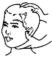 (2)颌外动脉止血法:在下颌角前1.5厘米处,将颌外动脉压在下颌骨上。此法适用于同侧面部出血,如图4-2。