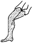 (5)股动脉止血法:在腹股沟中点下方,伤员仰卧,患侧大腿稍外展外旋,用双手拇指重叠将动脉压在股骨或股骨上端。此法适用于大腿、小腿出血,如图4-5。