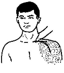 (3)锁骨下动脉止血法:在伤侧锁骨上内1/3处,用拇指指腹将动脉压向第一肋骨。此法适用于肩和上肢出血,如图4-3。