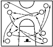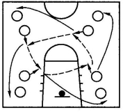 (3)跑动中传接球。连续传接切入如图5-14。