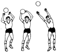 传球是一种控球效果非常好的技术,因此在活动中常作为场上调整组织的主要技术,如比赛中二传手为了提高进攻组织的成功率,常用的技术就是传球。此外传球在比赛中还常用来进行有威胁的推攻和隐蔽吊球等。除正面传球外,传球技术还可衍生为背传(图7-19)、侧传(图7-20)、跳传(图7-21)等。
