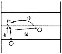 方法:一人拦网,一人二传,两人轮流扣球。扣球者有意轻打让拦网者拦回然后将球救给二传,二传再将球传给扣球者。