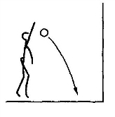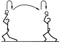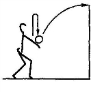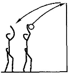 (2)出左脚(二步助跑第一步)同时右手向前上方抛球。