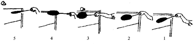 b.引拍动作:屈肘,前臂向外伸展并展腕,手指放松握拍。