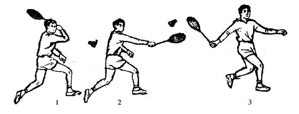 ③击球动作:基本同正手击高远球,击球点较高远球稍前,击球时拍面前倾,击球的后上部。