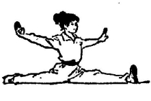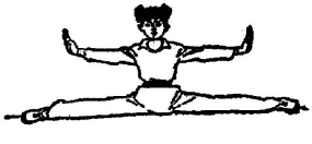 (2)柔韧性较好的,可做手不扶地的向下劈腿动作;也可在劈叉时,上体做前俯或后仰的动作。