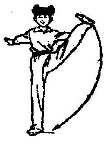 要求与要点:挺胸、塌腰、松髋、展髋,外摆幅度要大,成扇形。