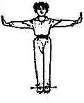 预备姿势:两脚并立,两手立掌或握拳,两臂侧平举(图10-33)。