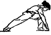 纠正方法:强调上体右转,两掌掌指向右同时扶地。