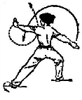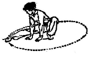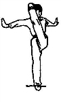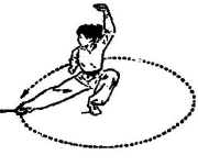 ①可先做站立扫转动作(上肢动作按动作说明进行),左膝稍屈,右脚掌贴地旋转一周,以体会旋转时保持身体平衡的动作要领。