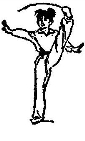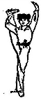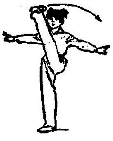 要求与要点:两腿挺膝,支撑腿全脚着地,脚趾抓地,挺胸、展腕、腰后屈。
