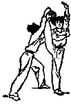 ③扫转时,拧腰与扫腿配合得不协调或用力不当,造成上体前后倾倒和扫转动作中断。如拧腰速度过慢,或上体前倾,凹胸,往往会使右腿在扫转过程中与左腿之间形成的角度太小(夹髋),造成身体后倒,动作中断。如拧腰过早或速度过快,使右腿拖在身后,与左腿之间形成的角度太大(敞髋),造成身体前倾、旋转中断。