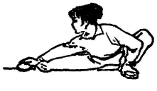 (3)先以前额、鼻尖触及脚尖,然后过渡到下颏触及脚尖(图10-19)。