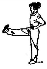 要求与要点、练习步骤、易犯错误和纠正方法均与弹腿同,惟强调勾脚尖。