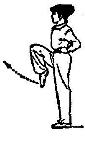 ②原地连续摆一条腿,可按口令要求的速度摆,然后换腿练习。