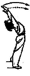 开步站立,两臂上举,然后以腰、髋关节为轴,上体做前后屈和甩腰动作,两臂也跟着甩动,两腿伸直(图10-56、图10-57)。