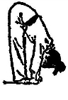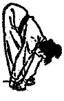 并步站立,两手手指交叉,直臂上举,手心朝上,上体前俯,两手尽量贴地(图10-53)。然后两手松开,抱住两脚跟随后逐渐使胸部贴近腿部。持续一定的时间再起立(图10-54)。还可以向左或向右侧转体,两手在脚外侧贴触地面(图10-55)。