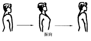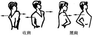 (1)左(右)肩向内收,稍含胸,然后向外展肩,挺胸。