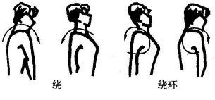 (2)绕环:左(右)肩以肩关节为轴向前或向后做360°以上的圆周动作(图11-7)。