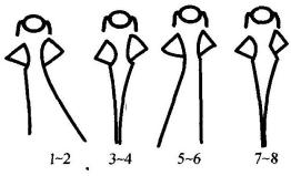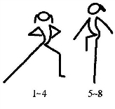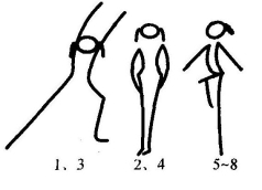 第八个8拍同第七个8拍,但方向相反。