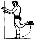 身体成站立(或俯卧)姿势,穿铁靴,每次练习一腿。屈膝抬起小腿,然后放下(图12-83)。该练习发展大腿后部的肌肉(腂绳肌)。