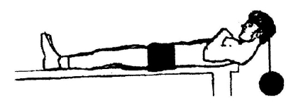 这种举重需要头铠,仰卧在凳上,头过凳的另一端,头铠戴在头上,杠铃片悬于头外,头部做后伸和前屈动作,双手置于胸上或抓住凳的两侧以固定身体(图12-77)。该练习发展颈前和颈侧的肌肉(胸锁乳突肌)。动作中如发现头铠要滑落现象,可把它固定在头上,人体中颈肌的发展比其他任何肌肉都快。