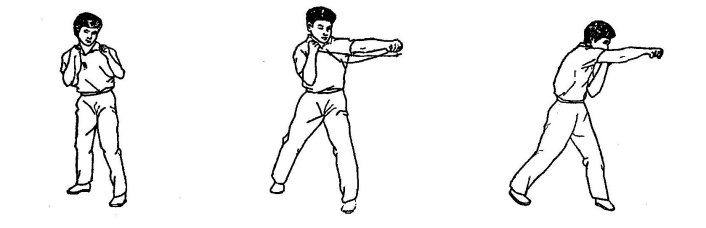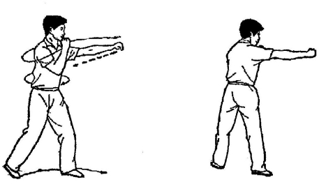 ②只动小臂。冲拳时以肘关节为轴,只是前臂的屈伸。纠正时,强调肩先起动,催肘送拳。
