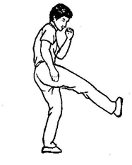 ②屈膝上提不够,屈伸不明显。纠正时,可一手扶墙或肋木,多练习屈膝侧踹,强调腿的屈伸。