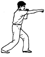 ①上体前倾。冲拳时上体向前移动过多,腰没有向左拧转。纠正时,多体会腰绕纵轴方向拧转的要领,克服向前探身的毛病。