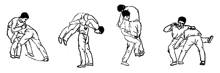 上步、跟步和转身抓与搂要迅速且连贯。进身时双腿要半蹲,臀部要贴紧对手的胯关节,左手搂紧对手的颈部,使用摔法时的伸腿、弓背、转腰及两手用力要协调一致。