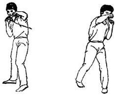 ②前臂没外甩,形成直臂抡打,力点不准。纠正时,可原地练习鞭拳,体会前臂外甩的要领。