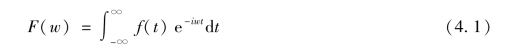 法国数学家约瑟夫·傅里叶(1768—1830)在研究偏微分方程的边值问题时提出了傅里叶级数(Fourier series,FS)的概念,傅里叶级数可以将任何周期函数或周期信号分解成一组简单振荡函数的和,即可以用正弦函数和余弦函数表示。然而,并非所有的信号都是周期信号,所以对傅里叶级数的概念进行了延伸,即将函数的周期延长并被允许接近于无穷大时可以导出傅里叶变换。当一个函数满足狄利克雷条件即在无穷区间内绝对可积时,则傅里叶变换式(4.1)成立: