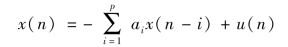 p阶AR模型的参数为ai(i=1,2,…,p),u(n)为白噪声序列,对其进行Z变换,则AR模型的传递函数为