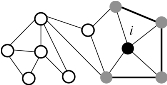 目前在复杂网络分析中主要采用基于图论的方法,将人脑看成网络,采用二元连接矩阵和连接之间特定的生理数据结合来描述大脑拓扑结构。一个复杂网络G(V,E)可以用一个由节点(V)和边(E)的集合构成的图表示,如图4.12所示,空心圆圈代表网络节点,节点之间的连接线代表边。基于脑电信号的脑网络分析主要包括以下步骤:①首先选择合适的网络节点,将头皮电极作为构建脑网络节点;②定义连接边,选择度量指标来表征节点之间的关联强度,得到大脑的连接矩阵。通常情况下,通过度量不同节点的时间序列之间的相关性来建立连接边,即衡量两个电极之间信号的相位同步性,常用方法包括互相关(cross-correlation)、互信息(mutual information,MI)、同步似然(synchronization likelihood,SL)、相位滞后指数(phase lag index,PLI)等。除了无向功能连接分析方法,有向功能连接显示不同区域或电极之间信息的流向和交互作用,主要有格兰杰因果关系(Granger causality,GC)分析、结构方程模型(structural equationmodeling,SEM)分析以及动态因果模型(dynamic causalmodelling,DCM)分析等;③选择合适阈值以确定节点之间是否存在连接边的关联。节点之间的关联关系可以用二值矩阵描述,如果任意节点i、j间存在边则二值矩阵此元素aij值为1,相反则为0。