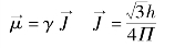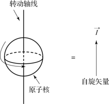 我们以1 H的自旋为例,想象质子是一个表面均匀分布正电荷且围绕轴线进行高速旋转的球体,如图5.2所示。旋转过程中质子表面的电荷产生环形电流,产生一个磁场,这个磁场称为核磁矩。对于中子来说,磁矩是由于中子表面和内部的正、负电荷分布的不均匀引起的,使得自旋的中子同样具有微小的磁场,但是与质子本身带有的电荷相比,其电荷量要小很多,旋转之后形成的磁矩也比质子形成的磁矩小得多。1 H原子核自旋的角动量J→与磁矩之间的关系如下: