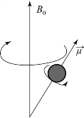 置于恒定磁场B0的自旋磁矩,如果它的矢量方向与外界磁场方向不一致,那么磁矩将受到一个力矩作用,使得磁矩