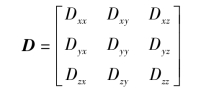 分子从起始位置经过指定时间间隔后漂移的距离用弥散张量D表示,其矩阵表述如下: