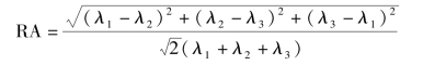 相对各向异性(relative anisotropy,RA)计算的是特征值的方差与平均值的比值: