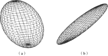 在各向异性组织中,在给定扩散时间情况下,分子扩散形成一个椭球。这一椭球的半径与特征值成正比,椭球的空间走向由特征矢量决定。特征值、特征矢量与扩散椭圆的关系如图5.20所示。