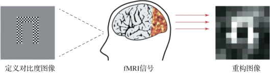 多体素模式分析可以应用于解码大脑活动,最为典型的是对视觉信息做解码的研究。2001年Haxby和他的同事通过对参与者颞叶腹侧(VT)的fMRI扫描,建立了相应的MVPA模型,在新的样本中推断出他看到的是鞋子还是瓶子。2008年Miyawaki通过使用MVPA对初级视觉皮层解码,可以还原出来被试看到的图案(图8.7)。