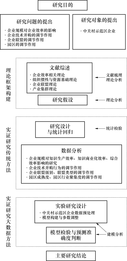 针对本书的主题以及研究对象科技园区企业的特性,将采用文献梳理、理论分析、数据包络分析模型、统计检验、实验建模等研究方法对1.3节中提出的研究问题进行系统和全面的分析。