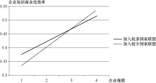 图7.2 企业加入的国家级联盟对企业知识商业化效率的调节作用