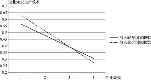 图7.1 企业加入的国家级联盟对企业知识生产效率的调节作用