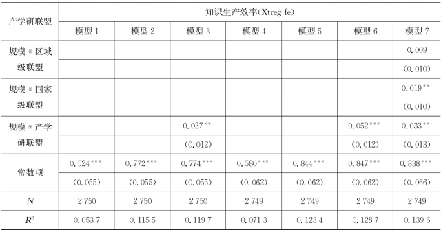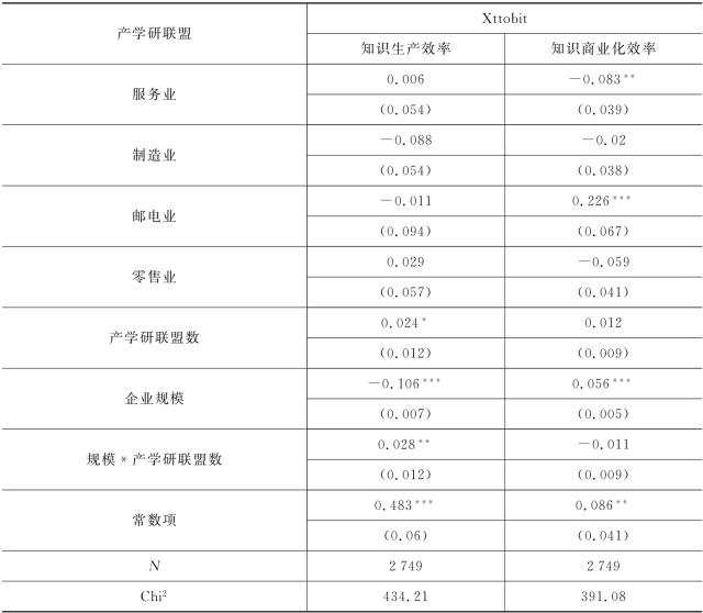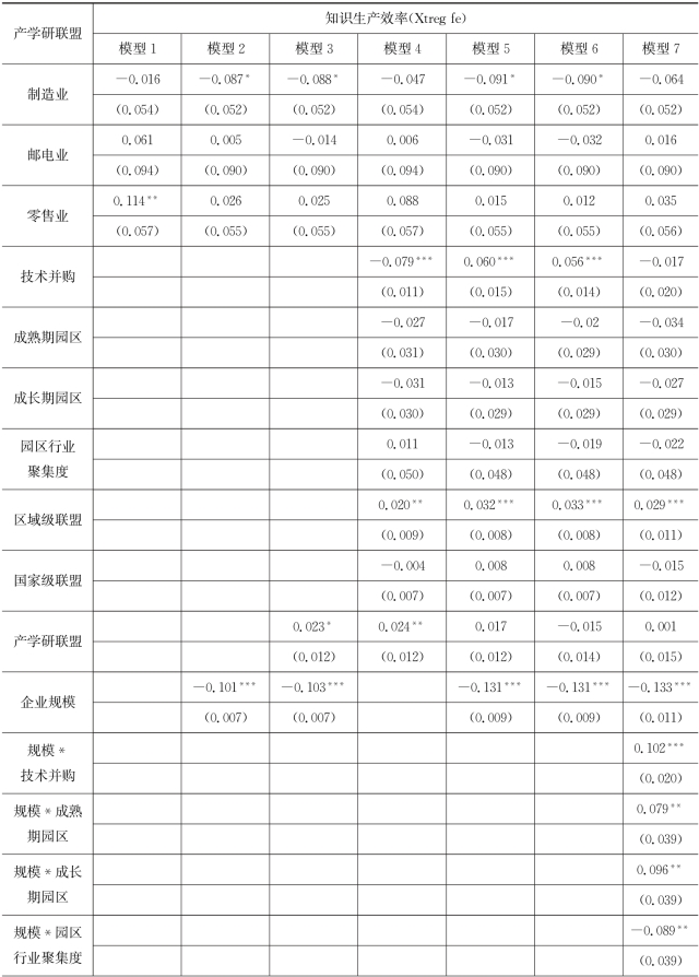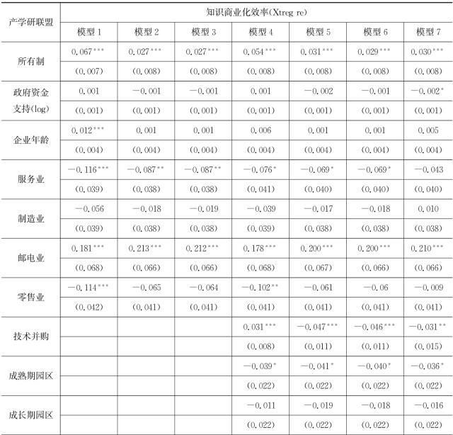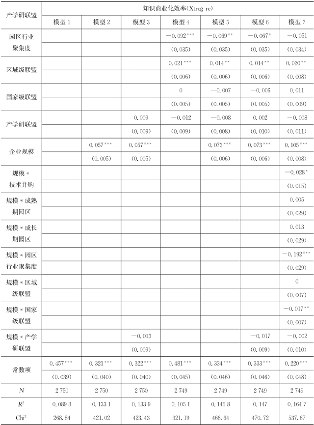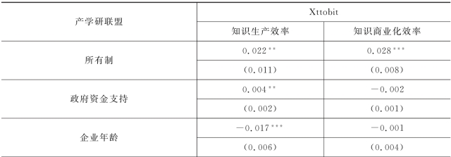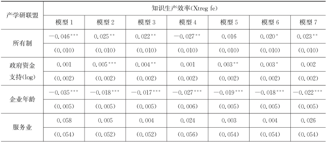 表7.7 企业所加入的产学研联盟对企业知识生产效率作用模型的回归结果