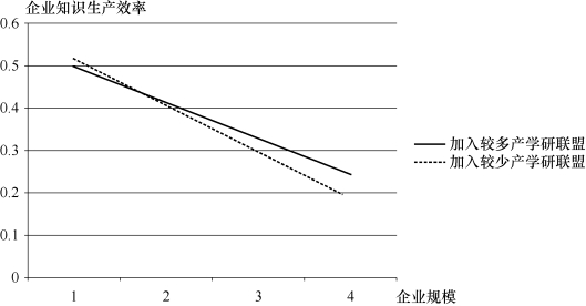 图7.3 企业加入的产学研联盟对企业知识生产效率的调节作用