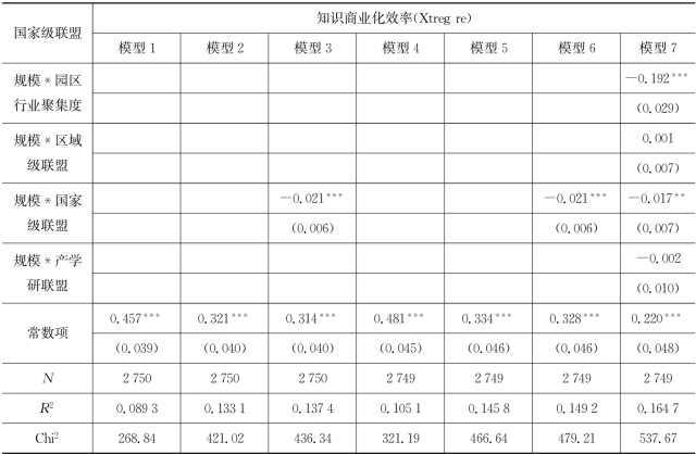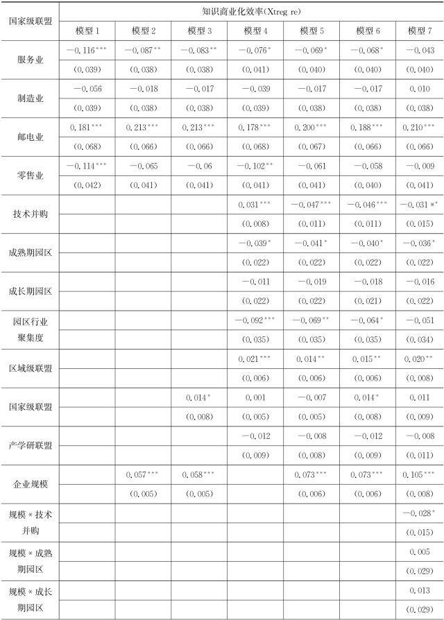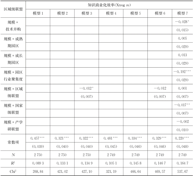 表7.5 企业所加入的区域级联盟对企业知识商业化效率作用模型的回归结果