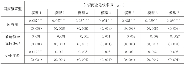 表7.1 企业所加入的国家级联盟对企业知识生产效率作用模型的回归结果