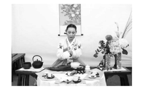 韩国茶礼又称茶仪,是民众共同遵守的传统风俗。茶礼是指在阴历每月初一、十五,以及节日和祖先生日的白天举行的简单祭礼,也指像昼茶小盘果、夜茶小盘果一样来摆茶的活动。更有专家将茶礼解释为“贡人、贡神、贡佛的礼仪”(见图2-6)。